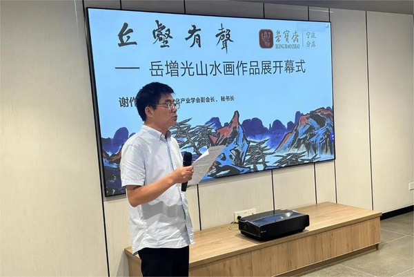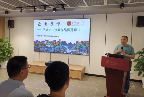 5月25日,由浙江省文化产业学会、荣宝斋宁波分店、宁波逸众文化发展有限公司共同主办的“丘壑有声——岳增光山水画作品展”在荣宝斋宁波分店开展。本次画展以水墨青绿山水题材为主,展出了岳增光近两年来创作的代表性山水画作品共38幅。