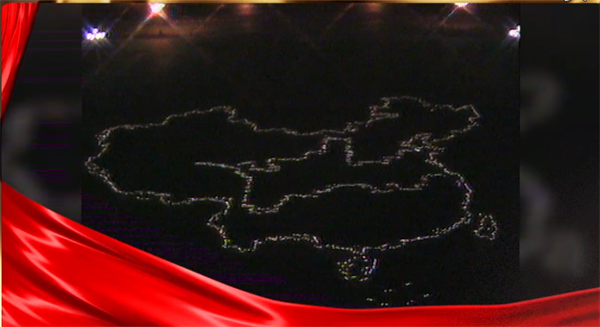 庆祝新中国成立40周年晚会的收官环节,天安门广场上用气球和电筒组成的中国地图