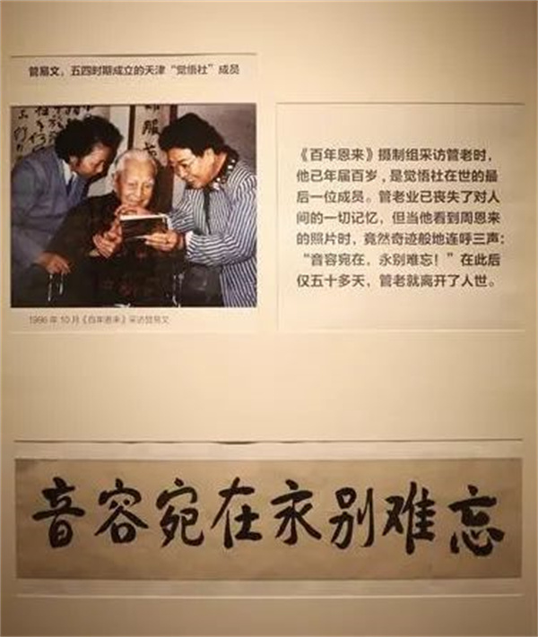 至今,邓在军仍清晰记得采访觉悟社成员管易文老人时的场景。当时,老人已经年满百岁,几年前就完全丧失了记忆力,连厮守身边的亲属都已经认不出来。当邓在军拿出周恩来的照片放在他面前,看到照片,老人的眼睛亮了,他用微微颤动的手指抚摸着照片,嘴唇翕动。老人家中还挂着总理的一幅照片,上方悬着一个条幅,写了“音容宛在,永别难忘”8个字。当邓在军问他的家人是不是管老写的时,老人慢慢抬起头,停了几秒钟,突然大声地喊出了条幅上的字,而且重复了三遍,在场的所有人无不为之动容。