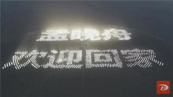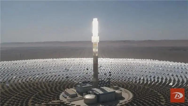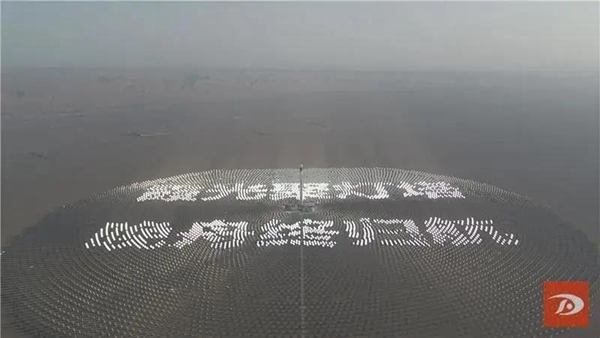 我国目前装机容量最大的光热电站——敦煌100兆瓦熔盐塔式光热电站用数千面定日镜拼组出8平方公里的巨幅标语:“霞光聚灯塔,晚舟终归航”“孟晚舟欢迎回家”。