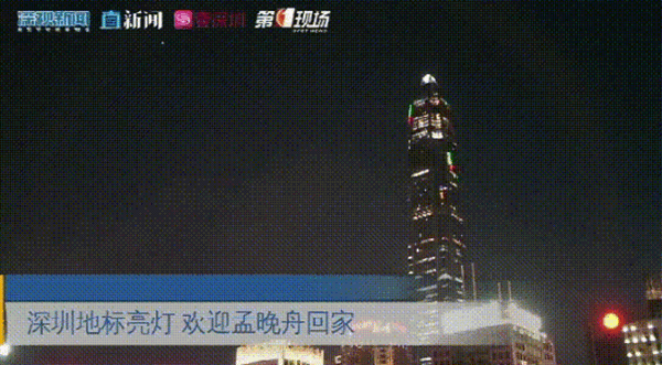 当晚,300架无人机点亮深圳夜空。广州、深圳、武汉等多地地标建筑也纷纷亮灯,欢迎孟晚舟回家。